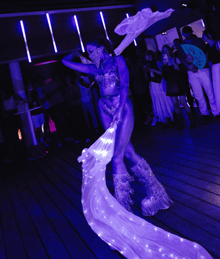 For the launch of Polygon Labs' groundbreaking Katana service, we designed an unforgettable immersive evening, a fusion of Japanese-inspired elegance and cutting-edge energy. Guests were transported into a world of mesmerizing artist projections, captivating dance performances, and the electrifying beats of the renowned DJ @djboring, all set against the breathtaking backdrop of a Cannes rooftop. Every detail was crafted to spark inspiration, connection, and awe.